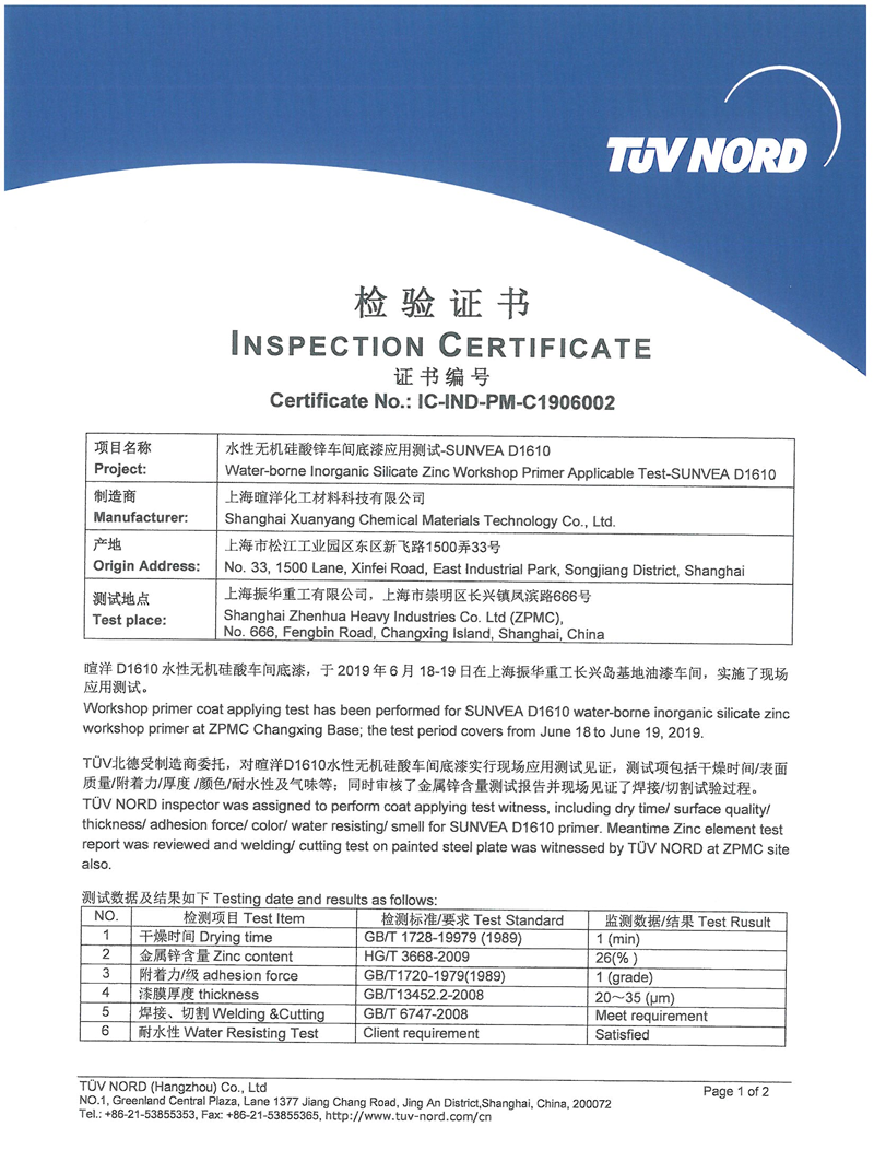 完全执行船用车间底漆制造标准,通过所有耐候性、切割、焊接等测试;